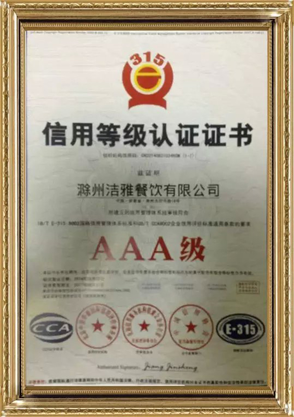 信用等級(jí)認(rèn)證證書